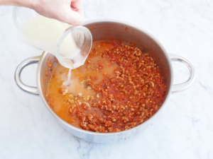 18. Añadir el caldo de pollo o de carne.