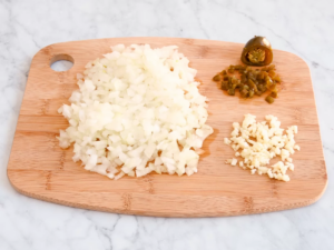 1. Picar muy finamente los dientes de ajo y la cebolla.