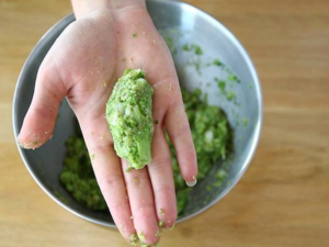 Con las manos limpias, toma pequeñas porciones de la mezcla y dales forma de croqueta: pueden ser cilíndricas, ovaladas o redondas, según prefieras. Lo importante es que todas tengan un tamaño similar para que se cocinen de manera uniforme.