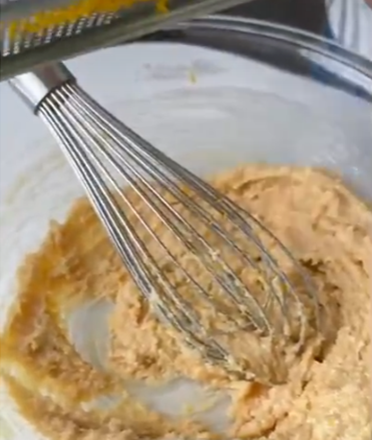 - En un bol amplio, coloca la mantequilla a temperatura ambiente junto con el azúcar rubia y la ralladura de naranja. Bate con un batidor de mano o eléctrico hasta obtener una mezcla cremosa, homogénea y ligeramente más clara. Este paso es importante para incorporar aire y lograr una textura más esponjosa.