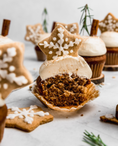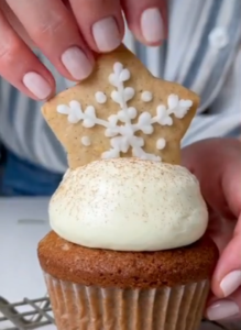 Los cupcakes navideños son una de las opciones más atractivas y versátiles para sumar a la mesa de las fiestas. Su tamaño individual los vuelve prácticos para servir, mientras que su sabor especiado y su decoración temática los convierten en protagonistas. Esta versión combina una base húmeda y aromática, con jengibre, canela, clavo y nueces, y un frosting de queso crema suave y equilibrado, ideal para contrastar con las especias. El resultado es un cupcake fragante, sabroso y visualmente irresistible, perfecto tanto para una reunión familiar como para regalar en Navidad.