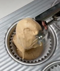 - Distribuye la mezcla en moldes para muffins con cápsulas de papel, llenando cada uno hasta dejar unos 3 milímetros libres en el borde para permitir que crezcan sin desbordarse.