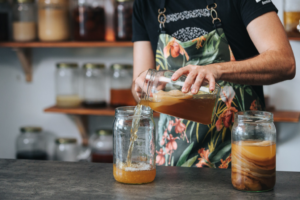 - Reservar un poco de kombucha de la primera fermentación en la heladera para futuras preparaciones.
