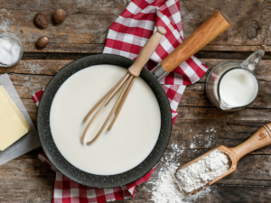 La salsa bechamel es el complemento cremoso que une las capas de la lasaña y equilibra la potencia del ragú. Su textura debe ser sedosa y ligeramente espesa, sin grumos.