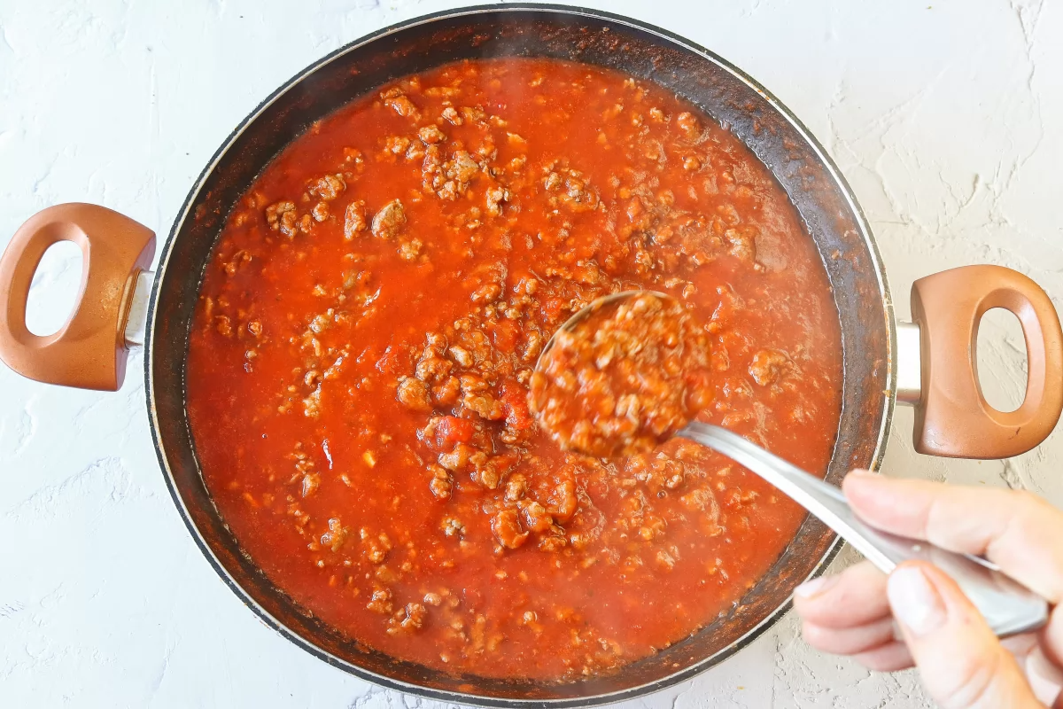 Una vez que la carne esté sellada, se agrega el tomate triturado. Este ingrediente aportará jugosidad y profundidad de sabor al relleno.