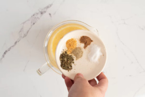 - Sumar la sal, la pimienta blanca, el ajo en polvo, la nuez moscada y el orégano.
