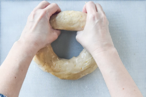 - Realizá un agujero en el centro con la palma de la mano y comenzá a darle forma de rosca.