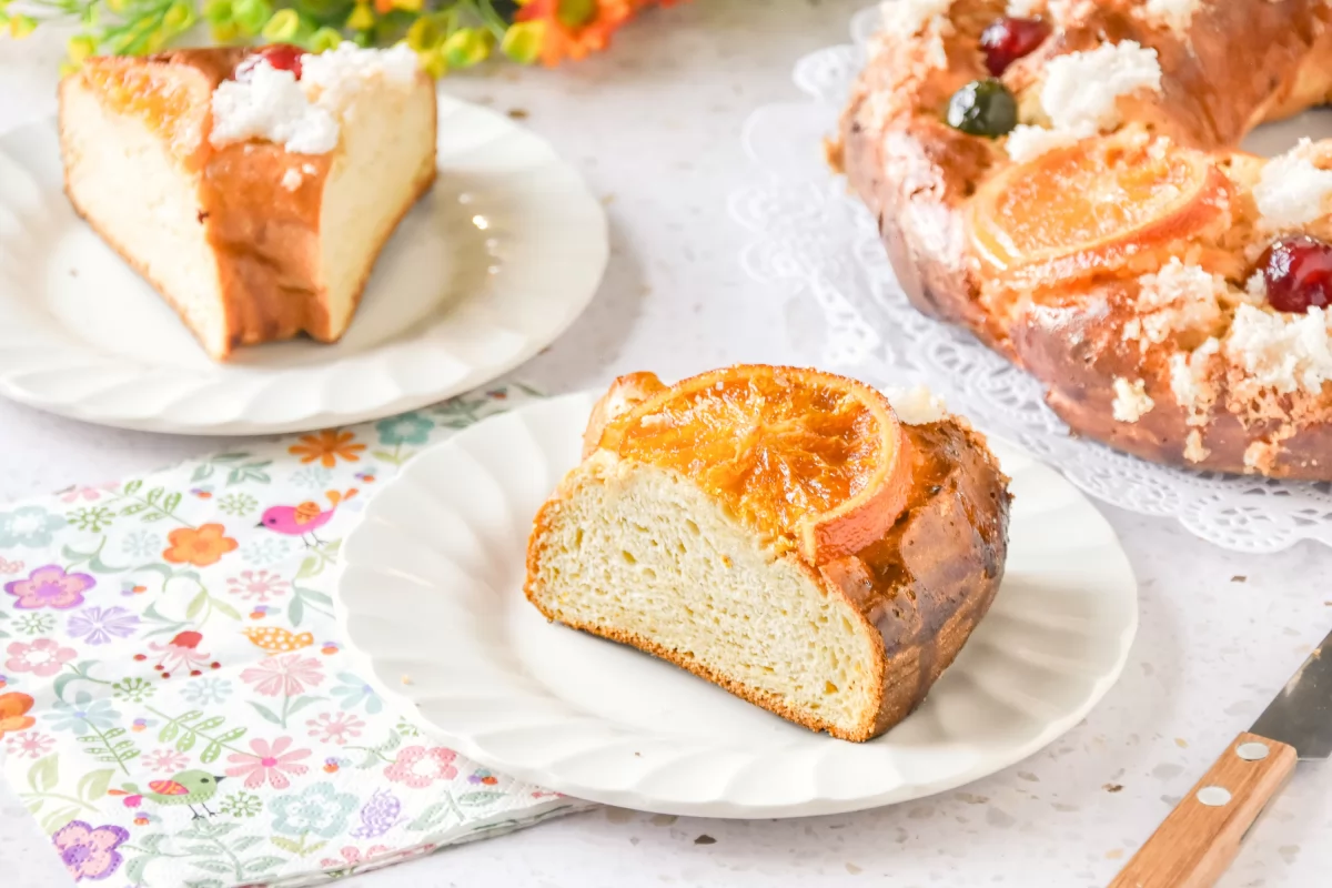 Además de la textura, el sabor es fundamental. Para lograr ese perfil tan característico, la masa se aromatiza con ralladura de naranja y limón, agua de azahar, un toque de ron y miel. Estos ingredientes aportan fragancia y profundidad, logrando un roscón con un sabor clásico que encaja perfectamente en una mesa de Pascua.