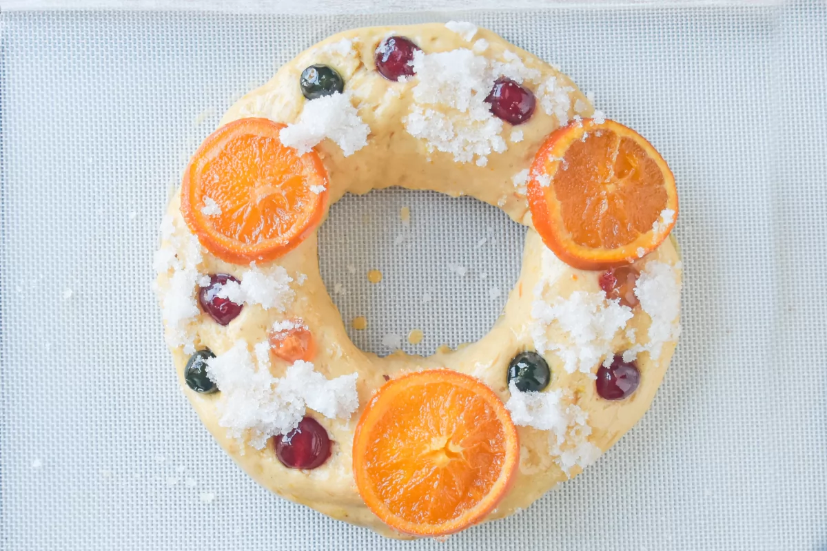- Retirá el roscón y precalentá el horno a 200 °C.