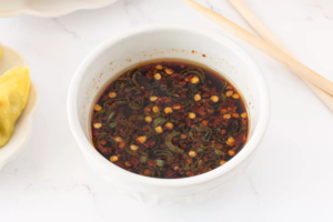 - Mezclamos de nuevo todos los ingredientes hasta que queden bien integrados. Una vez lista, servimos la salsa en pequeños cuencos para acompañar nuestras gyozas recién hechas. Cada comensal podrá mojar las empanadillas en la salsa antes de cada bocado, disfrutando así de todo su sabor.