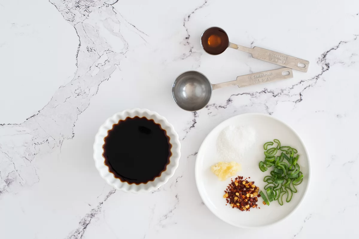 El equilibrio de sabores es la clave de esta preparación. La salsa de soja aporta la base salada y el característico sabor umami; el vinagre de arroz introduce una ligera acidez que refresca el conjunto; el aceite de sésamo añade aroma y profundidad; y los copos de guindilla ofrecen un toque picante que se puede ajustar según las preferencias personales. El azúcar, por su parte, ayuda a equilibrar los sabores, mientras que el ajo y la cebolleta aportan frescura y un matiz aromático muy agradable.