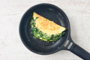 Un aspecto clave en esta preparación es la técnica de cocción. Para evitar que las espinacas se cocinen en exceso y pierdan su textura y color, se incorporan una vez que la base de huevo ya comenzó a cuajar. De este modo, quedan ligeramente calientes pero mantienen su frescura, lo que aporta un contraste muy agradable en cada bocado. Este pequeño detalle marca una gran diferencia en el resultado final.