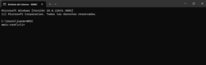3-En la ventana que se abre, escribí el comando WMIC y presioná Enter.