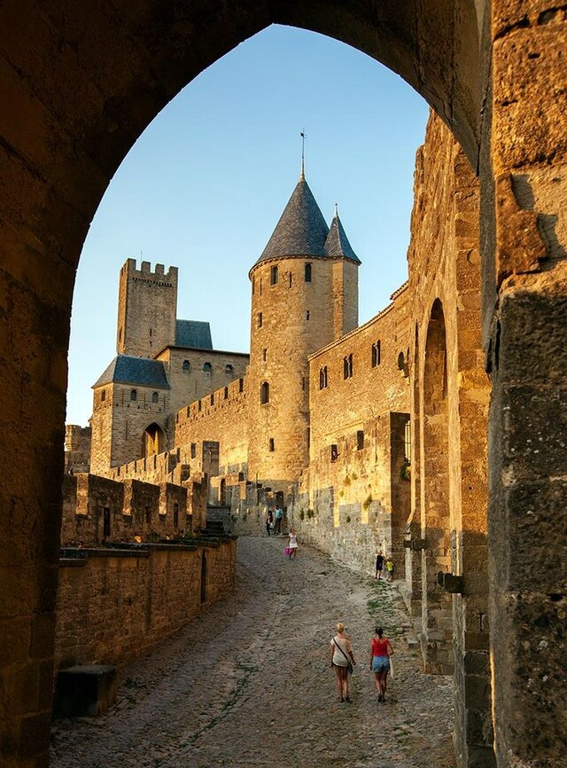 Protegida por una doble muralla con más de 50 torres, la Cité de Carcasona parece un escenario sacado de un cuento. Entre sus monumentos destacan la puerta de Narbona, el castillo Condal y la basílica de St-Nazaire, con vidrieras que crean un espectáculo de luz en su interior.