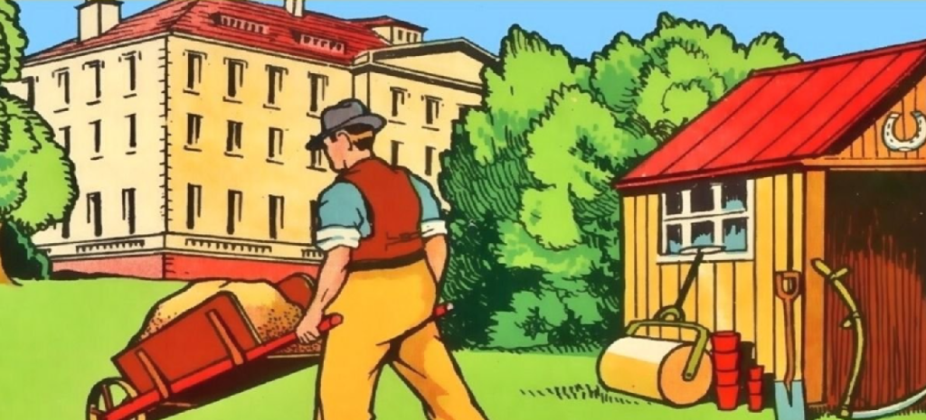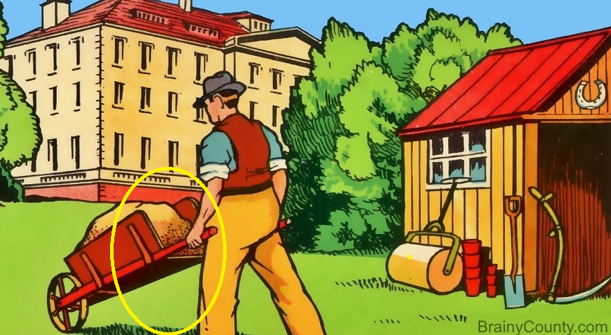 Para guiarte en este reto, utiliza la imagen que te ponemos justo arriba. En una observación más rápida, podemos notar a un hombre que lleva arena de un punto a otro del césped. Ciertamente, este material será utilizado en una obra, pero les aseguro que esta escena esconde mucho más que eso.