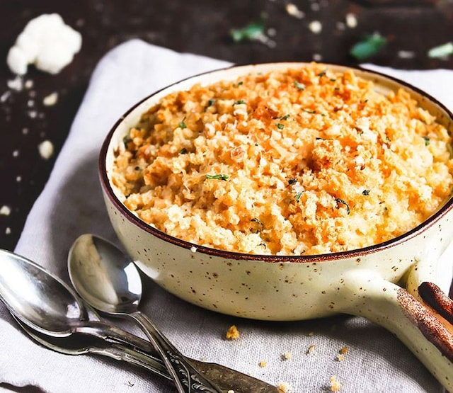 Una receta clásica. Primero, cocemos la coliflor en agua con sal durante unos 10-12 minutos. Luego la colocamos en una fuente de horno, cubrimos con salsa bechamel y queso rallado, y gratinamos. El resultado: una preparación reconfortante, ideal para los días fríos.