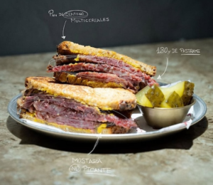 Su sándwich estrella se sirve en pan de centeno ligeramente tostado, con una generosa cantidad de carne jugosa y una mostaza casera que potencia los matices especiados sin eclipsarlos. El resultado es intenso, equilibrado y profundamente satisfactorio. Cada bocado recuerda a las delicatessen neoyorquinas, pero con una ejecución cuidada al detalle y un claro respeto por el producto. Es uno de esos sándwiches que crean adicción y justifican por sí solos una visita.