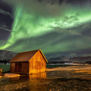 Este archipiélago combina uno de los escenarios más fotogénicos de Noruega con una ubicación ideal. Montañas escarpadas, playas de arena blanca, fiordos profundos y pueblos pesqueros pintorescos dan un marco único a las luces danzantes. Localidades como Reine o Hamnøy son particularmente buscadas por fotógrafos que desean captar la aurora sobre paisajes icónicos.