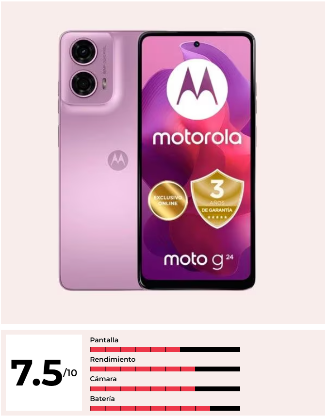 Además, el Moto G24 es resistente a salpicaduras, lo cual es ideal para quienes buscan durabilidad en su dispositivo sin necesidad de invertir en un móvil de gama alta. Su memoria RAM de 8 GB, que se puede expandir virtualmente, asegura un funcionamiento ágil, incluso cuando se tienen varias aplicaciones abiertas. Cuenta con una ranura para tarjetas microSD, lo que permite ampliar su almacenamiento según las necesidades del usuario.