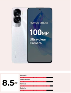 Si buscas un teléfono económico con una cámara destacable, el Honor 90 Lite 5G puede ser tu opción ideal. Este modelo cuenta con una cámara principal de 100 megapíxeles y una apertura de f/1,9, lo que le permite capturar detalles impresionantes, incluso en situaciones de iluminación complicada o con zoom.