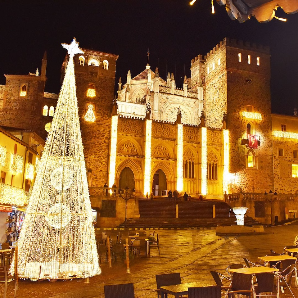 El pueblo gira alrededor del Real Monasterio de Santa María de Guadalupe, uno de los grandes conjuntos religiosos de Europa. Estas semanas también se engalana con un gran árbol a la entrada y un ambiente especialmente festivo. La visita al monasterio es indispensable: su iglesia gótica, el claustro mudéjar, la colección de cuadros de Zurbarán y la venerada imagen de la Virgen Negra lo convierten en un conjunto excepcional. Quienes deseen una estancia tranquila pueden optar por la hospedería del propio monasterio o por el Parador, un lugar ideal para disfrutar de una escapada breve antes de Navidad.