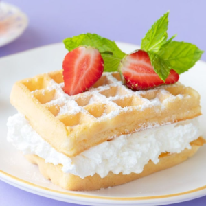 Si eres amante de los postres irresistibles, este sándwich de wafle con crema y frutillas se convertirá en uno de tus favoritos. Para facilitar la elaboración puedes comprar la crema ya montada, pero, por supuesto, puedes montarla de forma casera si lo prefieres. Decoraremos con unas frutillas de temporada y un poco de azúcar glas.