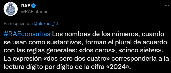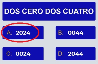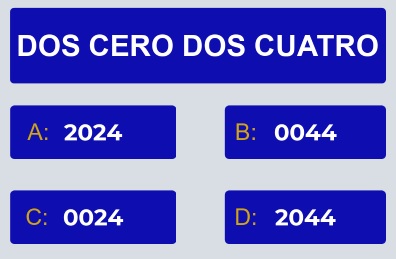 La expresión “dos cero dos cuatro” correspondería a la lectura dígito por dígito de la cifra “2024”.
