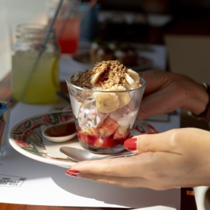 En una discreta esquina del barrio se encuentra Can Dende, famoso por su lema “Brunch y amor en Poblenou”. Sus huevos benedict se cuentan entre los mejores de la ciudad y su limonada casera se ha convertido en imprescindible. La influencia brasileña de su cocina aporta personalidad a platos como el pan de queso o sus esponjosos pancakes. El ambiente es desenfadado, luminoso y acogedor, ideal para empezar el día sin prisas.