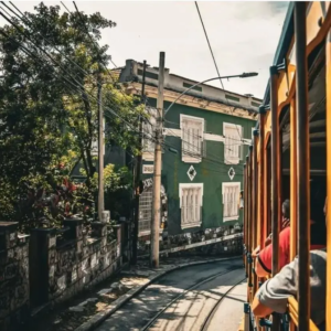 El tranvía parte desde la estación ubicada en la calle Lélio Gama, en el centro de Río, y comienza su recorrido ascendiendo por un camino rodeado de vegetación exuberante. A medida que avanza, atraviesa el famoso Arcos da Lapa, un antiguo acueducto colonial que conecta el centro de la ciudad con el morro. Cruzar por allí, suspendido en el aire, es una postal inolvidable. Luego, el bonde continúa su ascenso por callecitas estrechas y serpenteantes, flanqueadas por casas de estilo colonial, muros cubiertos de murales coloridos y árboles tropicales que dan sombra y frescura.