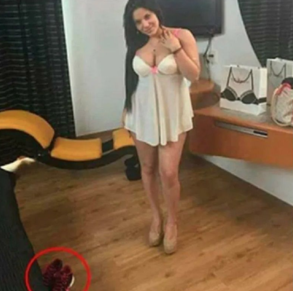 Como puedes ver, en la foto se puede observar unos zapatos deportivos claramente masculinos, se encontraba semioculto cerca de la cama, pareciera que se tratara de un detalle no muy llamativo, pero la realidad fue que los zapatos no eran suyos ni de su prometida, y es por eso que el joven decidió cancelar su boda.