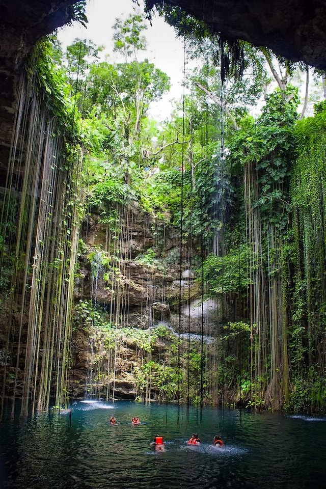 Después de recorrer Chichen Itzá, una excelente manera de refrescarse es dándose un chapuzón en el cercano cenote de Ik Kil. Este cenote es uno de los más conocidos y visitados de la región, y muchas excursiones a Chichen Itzá incluyen una parada aquí. Por ejemplo, Get Your Guide ofrece un paquete que, por unos 60 euros, incluye recogida en el hotel (desde Cancún, Playa del Carmen, Riviera Maya o Tulum), una visita guiada a Chichen Itzá, un baño en el cenote Ik Kil y un recorrido por Valladolid.