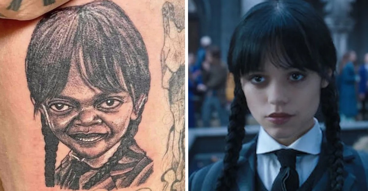 La popular serie de Netflix Merlina dio de que hablar, muchas personas rápidamente se hicieron fans y pusieron como ídola a Jenna Ortega, es por eso que quisieron tatuarse su rostro, pero claramente no resultó como esperaba pues está lejos de lucir como la actriz de la serie, ya que el único parecido que tiene es el cabello.