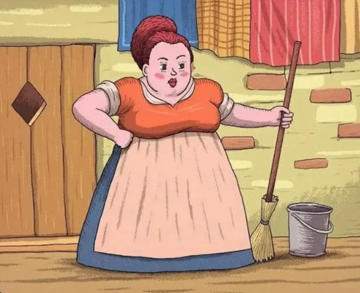 No hay duda de que un gato es el compañero perfecto para los días de encierro. La mujer del dibujo quizás piense lo mismo mientras barre su casa, solo que aún no se ha dado cuenta de que tiene compañía muy peculiar…