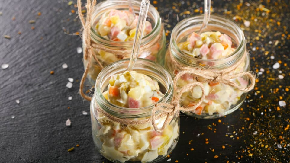 Aperitivo: Ensaladilla rusa en tarritos con maíz