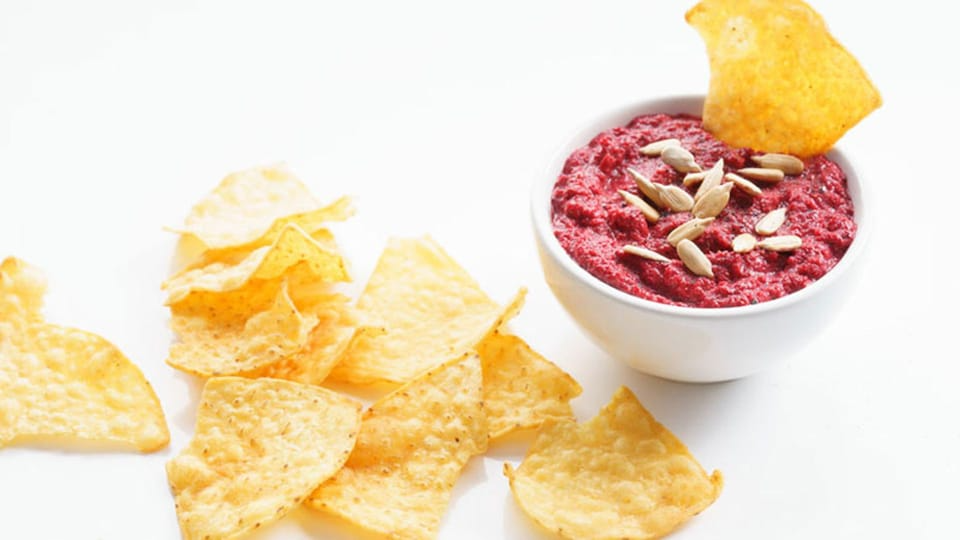 Si buscas un dip original y diferente, este guacamole sin aguacate es una excelente alternativa. La remolacha aporta un color vibrante y un sabor delicioso, mientras que el queso crema le da cremosidad.