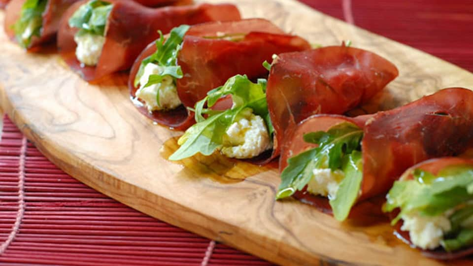 - Colocar una cucharada del relleno en el centro de cada loncha de bresaola.