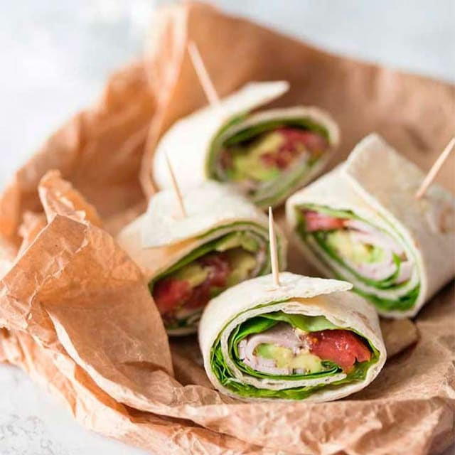 • Añadir dos lonchas de pavo en uno de los extremos.