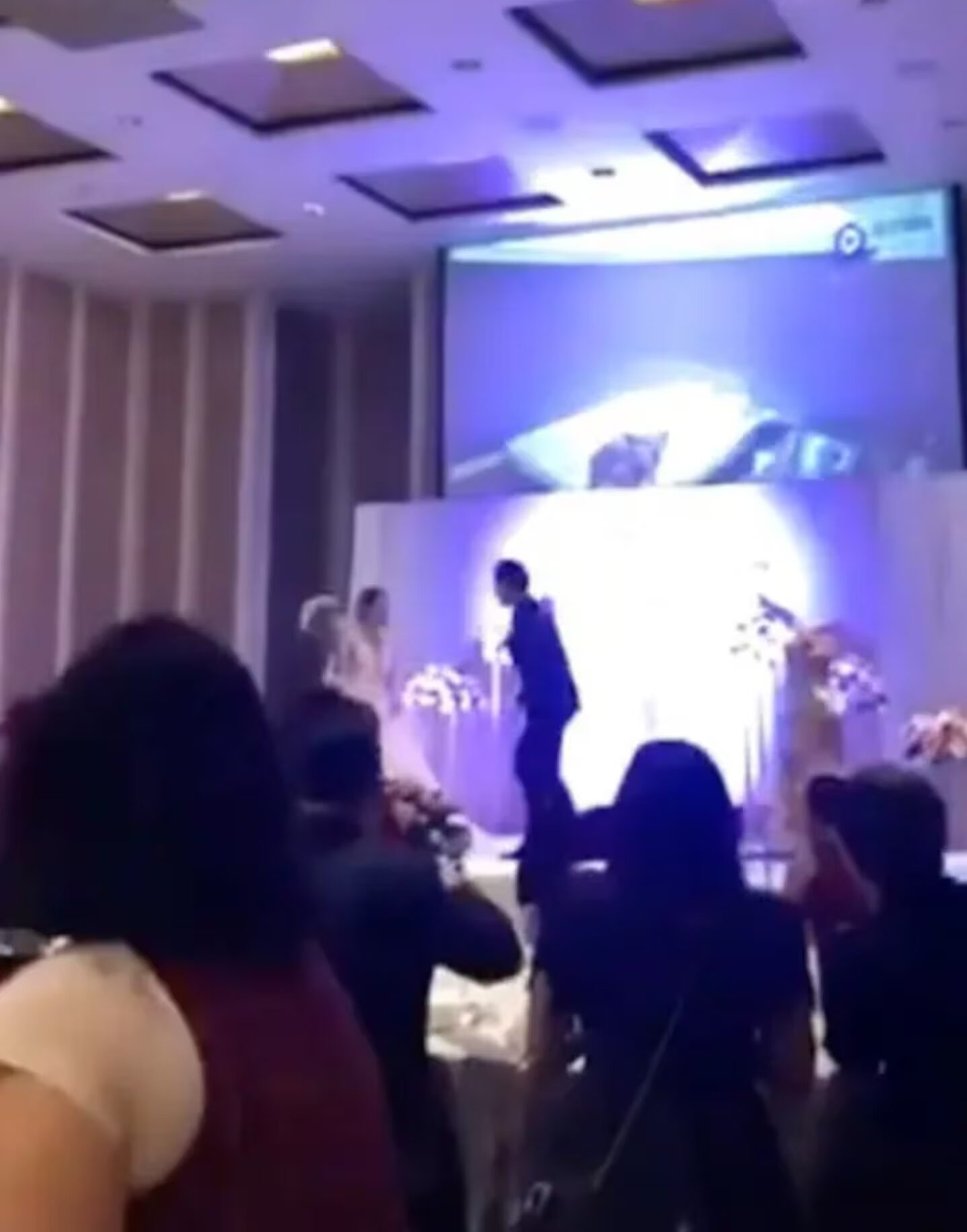 El evento se desarrollaba como una boda tradicional. La pareja recién comprometida, que llevaba saliendo dos años y había formalizado su compromiso seis meses antes, hacía su entrada al salón y se dirigía al escenario principal para iniciar la ceremonia. Sin embargo, la atmósfera cambió radicalmente cuando, de manera inesperada, la pantalla gigante comenzó a reproducir un video que mostraba la infidelidad de la novia.