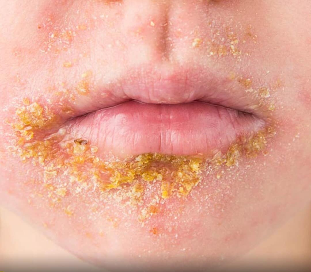 El impétigo suele comenzar con la aparición de pequeñas ampollas o lesiones rojizas que, con el paso de los días, se rompen y dejan expuesta una zona húmeda. Posteriormente, esta área se seca y forma una característica costra de color amarillento o miel, que es uno de los signos más distintivos de la infección. Estas lesiones pueden aparecer en distintas partes del cuerpo, aunque son más comunes alrededor de la nariz, la boca, las manos y las piernas.