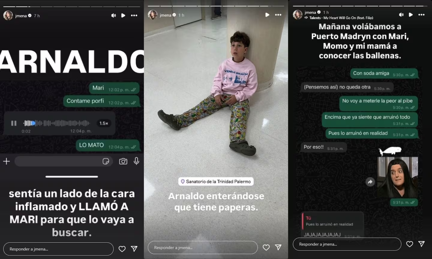 Más tarde, tras los estudios pertinentes, se confirmó que el pequeño había contraído paperas, una enfermedad viral que, aunque suele cursar de manera leve en los niños, requiere reposo y cuidados específicos. La noticia llegó justo antes de la fecha prevista para un viaje a Puerto Madryn, donde Jimena, su madre, Momo y Mari planeaban disfrutar de la temporada de avistaje de ballenas.
