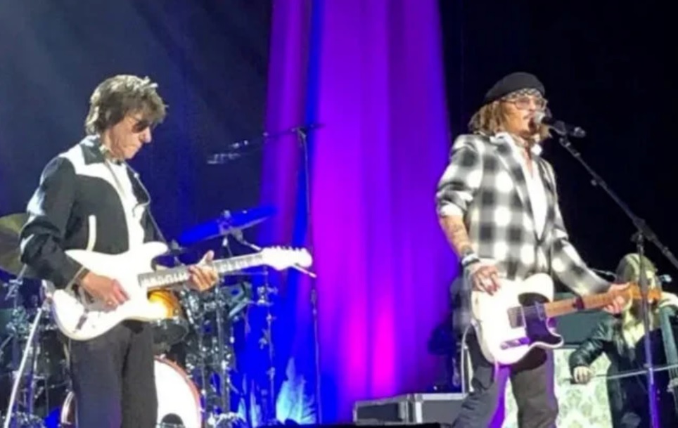 Luego de enfrentar una semana dura en el juicio Johnny Depp pensó que era momento de despejar la mente y decidió viajar para aparecer inesperadamente en el concierto de su amigo Jeff Beck donde tocaron juntos.