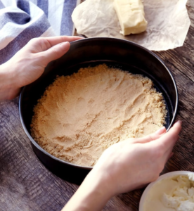- Presiona firmemente esta mezcla en el fondo de un molde desmontable.
