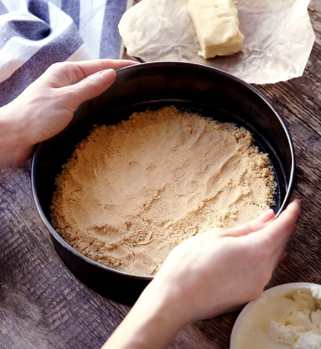 - Presiona firmemente esta mezcla en el fondo de un molde desmontable.