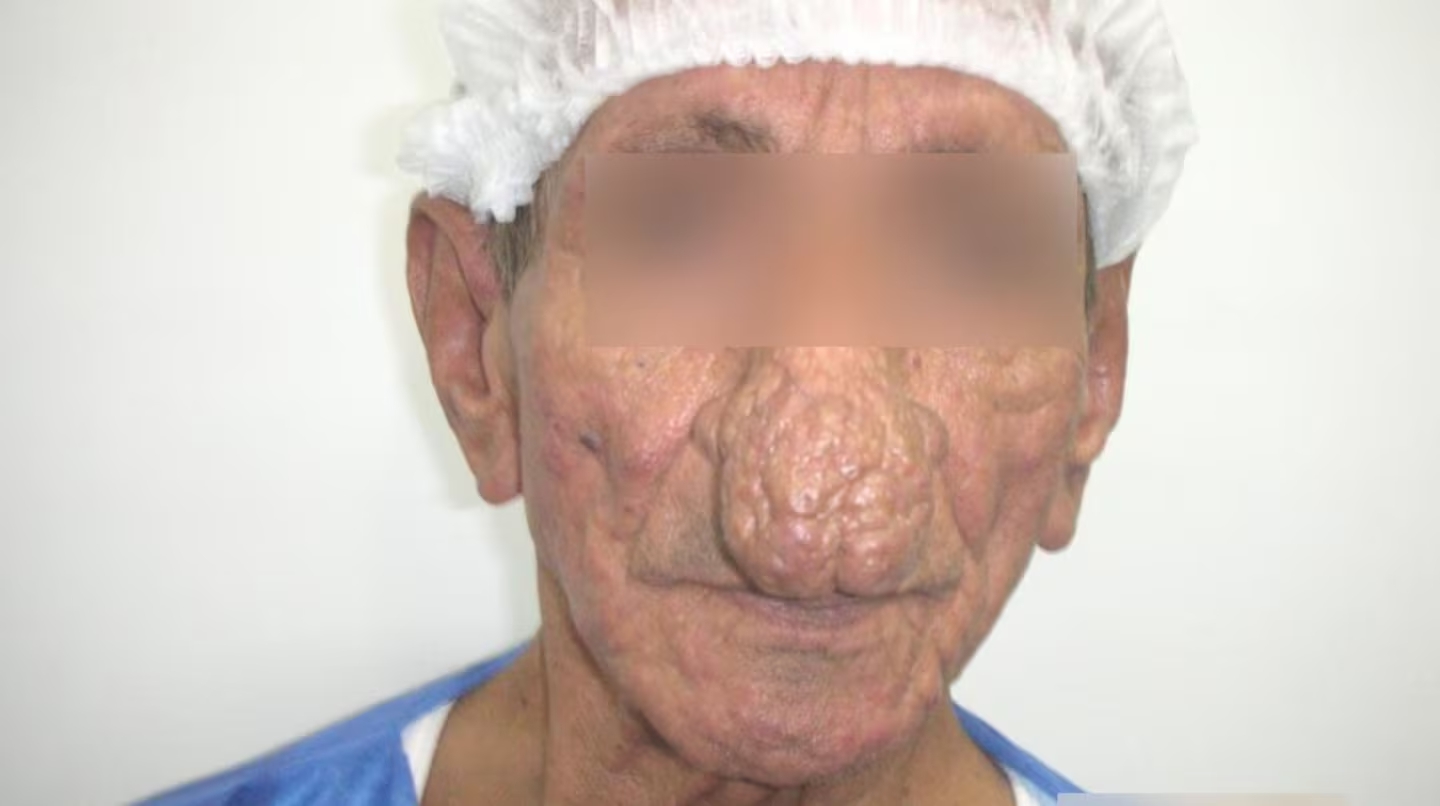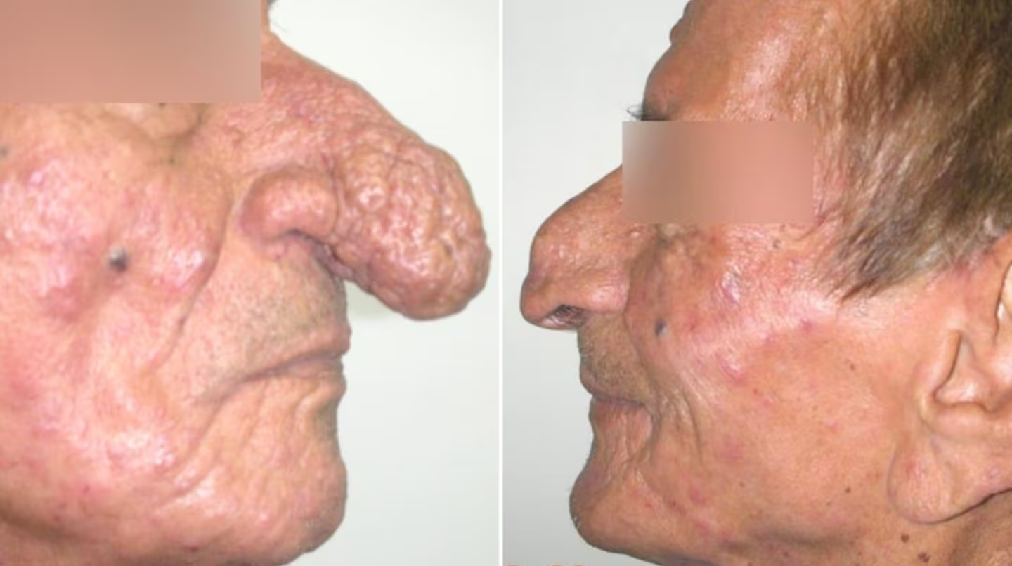 Durante años, este hombre convivió con un cuadro extremo de rinofima, una enfermedad que provoca un crecimiento desproporcionado de la nariz y que, en su caso, alcanzó dimensiones excepcionales: 14 centímetros de largo, cuando lo normal suele rondar los cinco. El tamaño de su nariz no solo afectaba su apariencia, sino también su autoestima y sus vínculos sociales.
