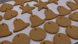 - Formar las galletas: Extiende la masa con un rodillo hasta que tenga un grosor de aproximadamente 3 mm. Usa cortadores con formas navideñas, como estrellas, árboles o muñecos de jengibre.