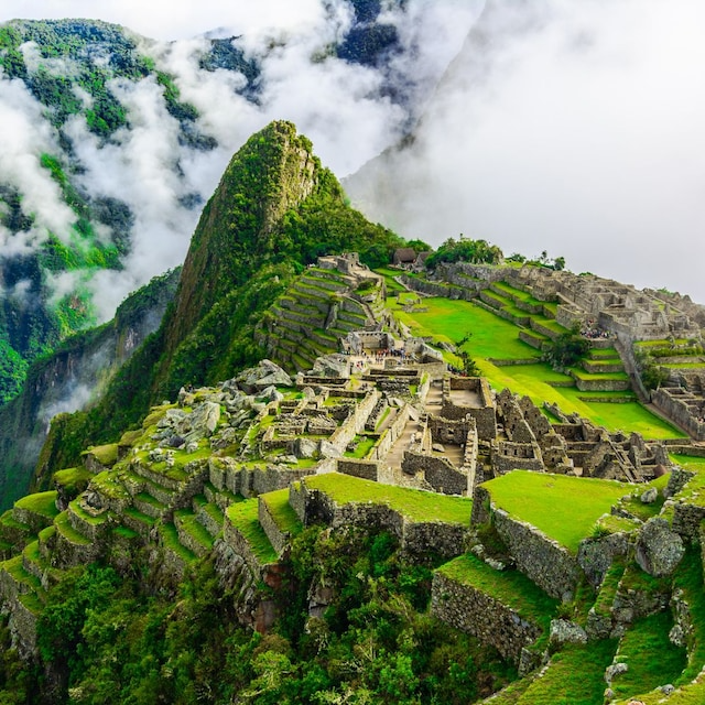 Esta antigua ciudad incaica, escondida entre las montañas andinas del Perú, se encuentra a unos 130 kilómetros de Cuzco y a 2350 metros sobre el nivel del mar. Machu Picchu impresiona tanto por su ubicación como por su excelente estado de conservación. En sus terrazas se cultivaban alimentos, y sus 140 edificaciones —templos, plazas, viviendas y santuarios— están interconectadas por escalinatas y canales de agua, que demuestran la sofisticación de esta civilización precolombina.