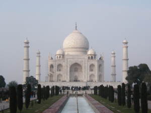Este majestuoso mausoleo de mármol blanco, ubicado en la ciudad de Agra, fue construido por el emperador Shah Jahan en honor a su esposa Mumtaz Mahal, quien falleció en 1631. El Taj Mahal es el monumento más emblemático de la India y uno de los máximos exponentes de la arquitectura mogola.