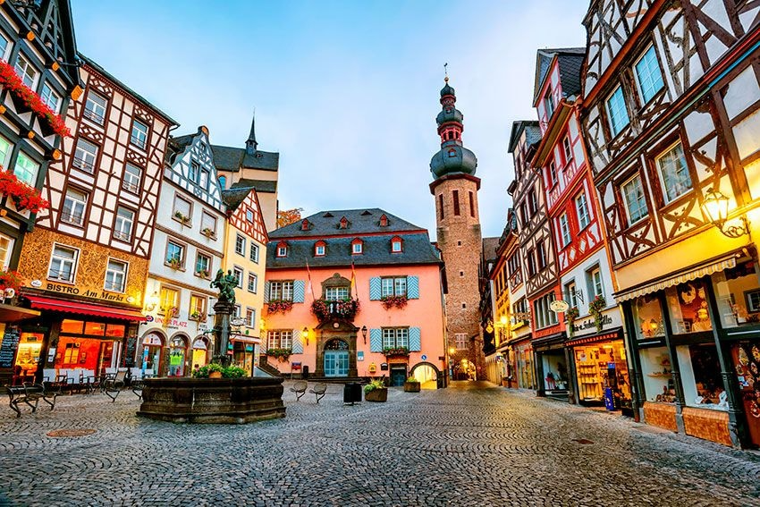 En las laderas del valle del Mosela, rodeada de viñedos que se tiñen de tonos dorados y rojizos en otoño, se encuentra Cochem. Esta localidad es una de las postales más famosas de Alemania gracias a sus casas de colores junto al río y, sobre todo, al castillo de Reichsburg, que se eleva sobre una escarpada roca dominando el paisaje. La mejor época para visitarla es en otoño, cuando la naturaleza se viste de gala y los viñedos están en plena cosecha. Un recorrido por alguna de las bodegas de la región permite degustar vinos locales que han dado fama internacional a la zona.