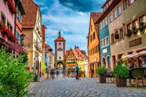 Rothenburg ob der Tauber, en el estado de Baviera, es probablemente el pueblo medieval más famoso de Alemania. Rodeado por una muralla perfectamente conservada, forma parte de la Ruta Romántica y parece detenido en el tiempo. Sus calles empedradas conducen inevitablemente hacia la Market Platz, el corazón de la ciudad, donde se alzan el ayuntamiento con su torre de casi 60 metros y la Clock Tower de la Ratsherrntrinkstube. Fuentes, iglesias, museos y antiguas puertas completan un recorrido que fascina a cada paso. Para muchos, es el pueblo medieval mejor conservado de Europa.