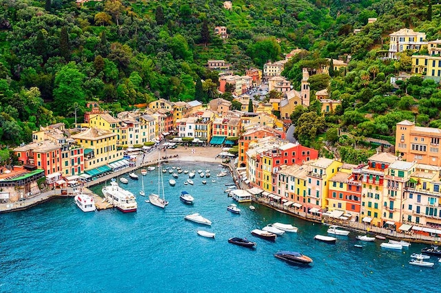 Encajado en un pequeño entrante entre un promontorio arbolado y el mar, Portofino ha permanecido prácticamente inalterado a lo largo del tiempo. Desde 1935, no se ha construido ninguna casa nueva, lo que ha permitido que el pueblo conserve su encanto original. Las calles empedradas están adornadas con boutiques de lujo, restaurantes gourmet y unos pocos hoteles de alta categoría. Este equilibrio entre modernidad y tradición hace de Portofino un destino irresistible.
